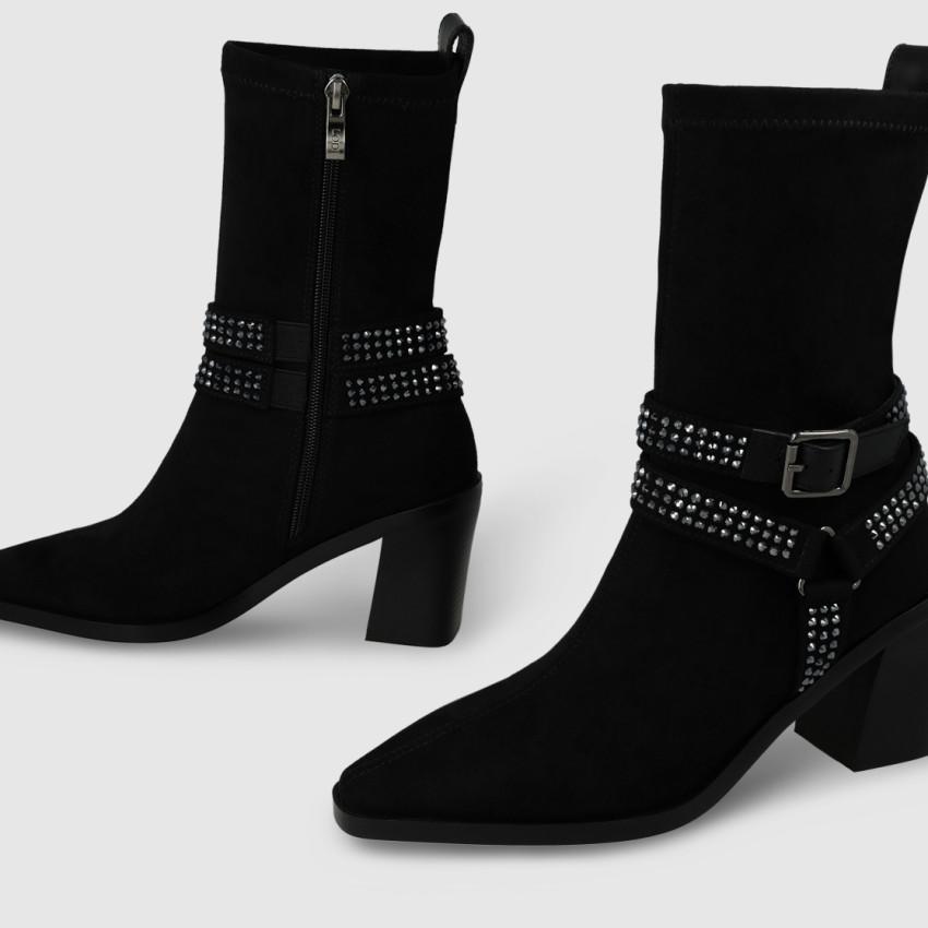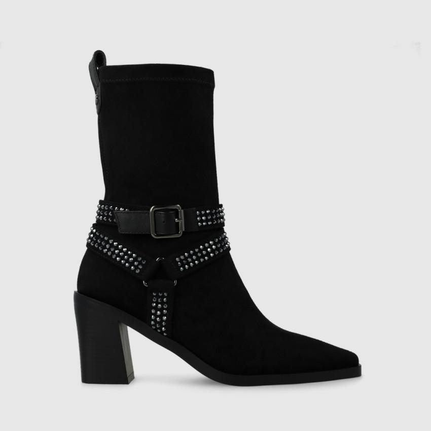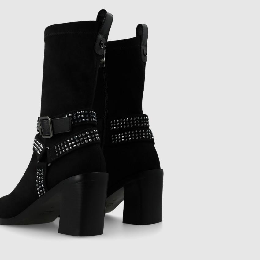 Botines de mujer en antelina negra y remaches metálicos de Lodi