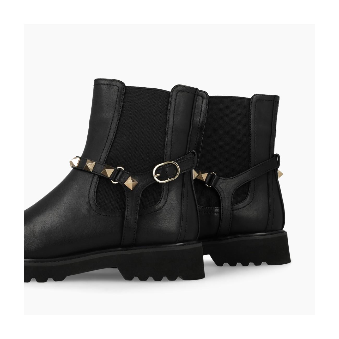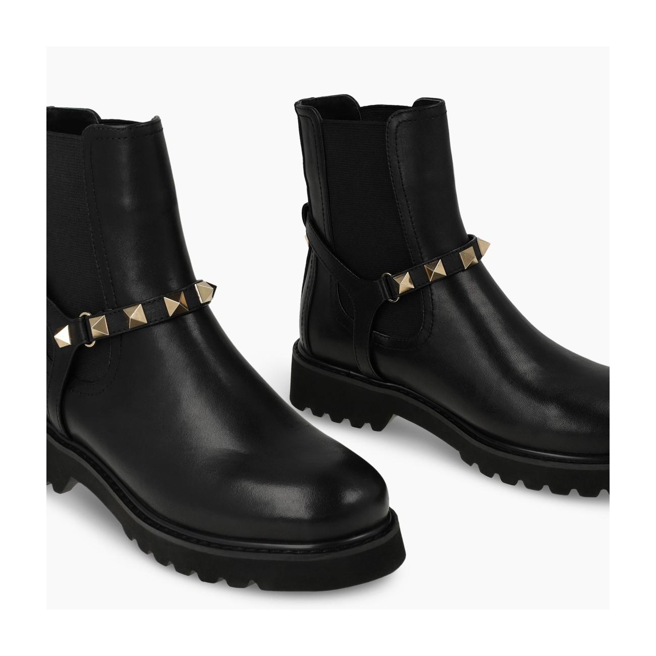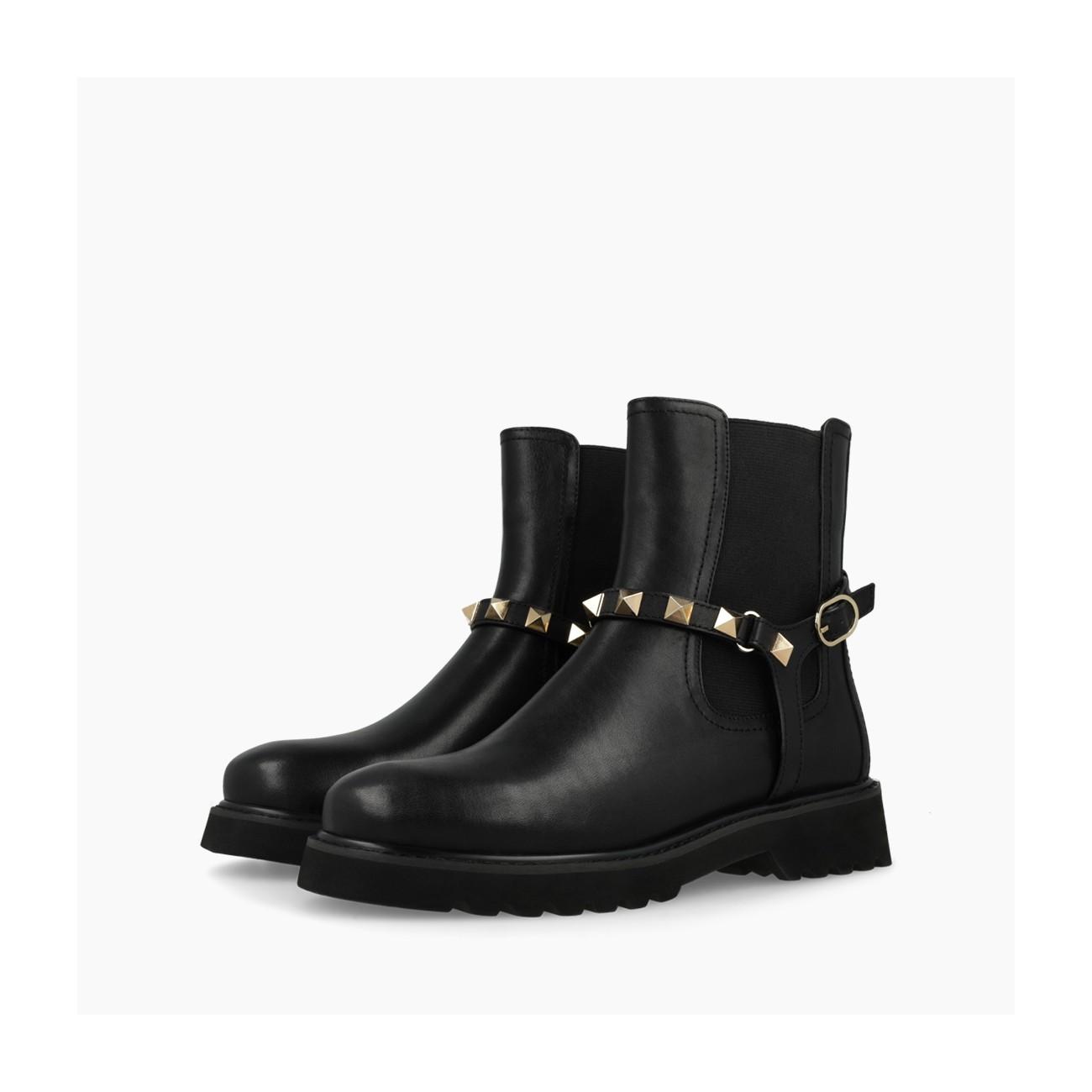 Botín chelsea en piel negra con remaches oro en el tobillo deLodi